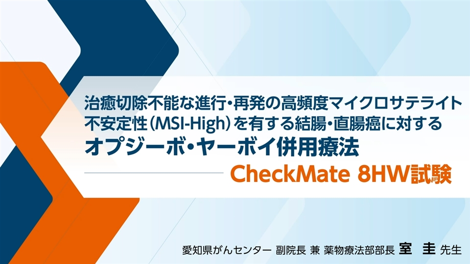 治療切除不能な進行・再発の高頻度マイクロサテライト不安定性(MSI-High)を有する結腸・直腸癌に対するオプジーボ・ヤーボイ併用療法について、愛知県がんセンター 副院長 兼 薬物療法部部長の室圭先生にご紹介いただきます。
